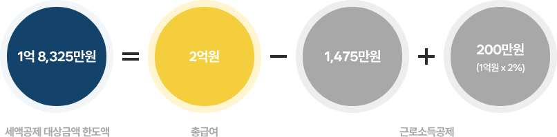 | 근로소득공제 (B) | 350 | 550 | 750 | 975 | 1,200 | 1,475 | 1,675 | |