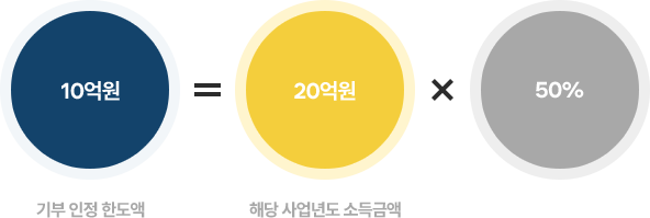 기부 인정 한도액은 10억원으로 기부한 5억원 전액 세액공제 대상